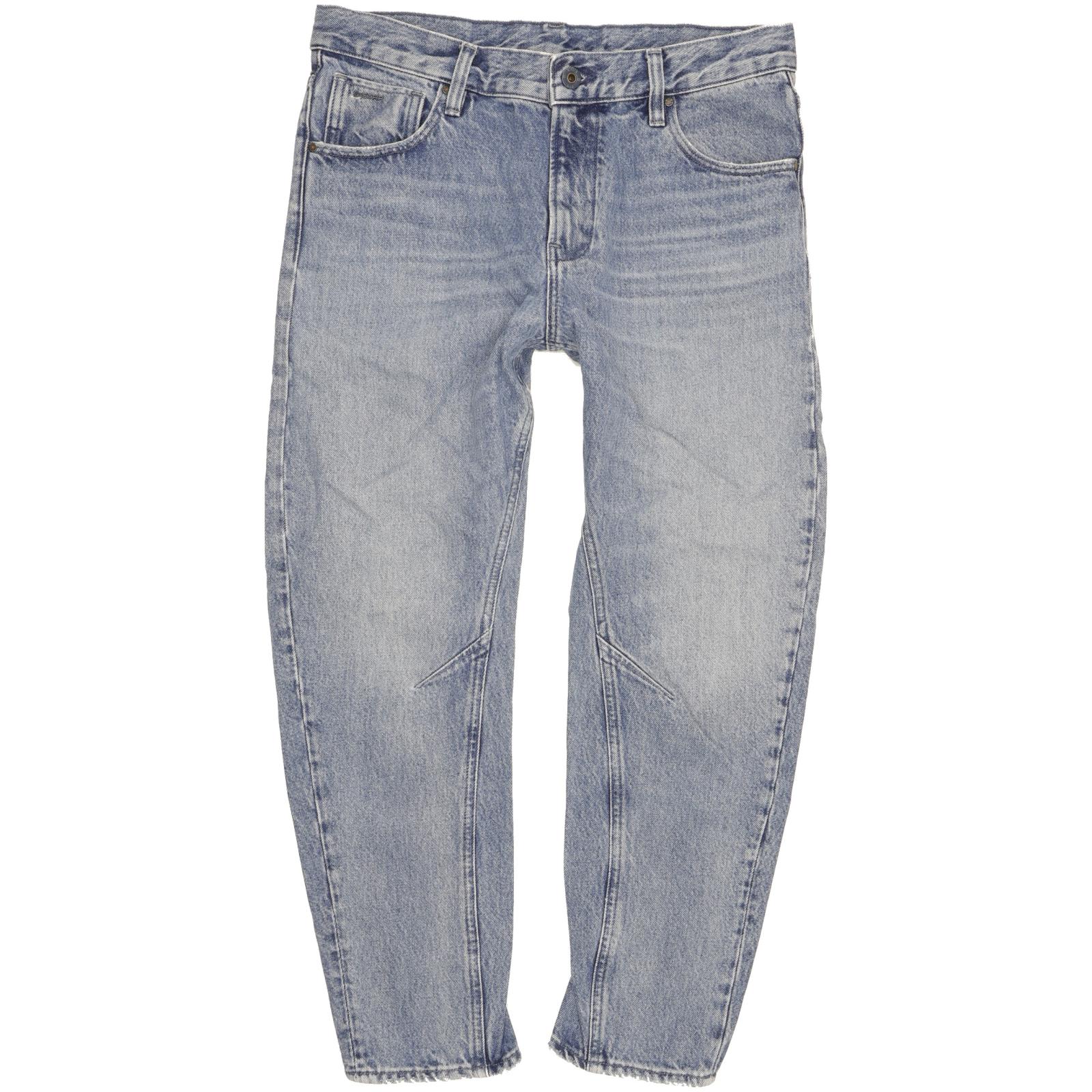 G-Star Arc 3D Tapered Loose Boyfriend Jeans in Good used condition Please note the actual inside leg measurement is 25" but due to style the leg meant to fit 30", please see photos. Jeans are made from 100% Cotton, they are in Blue colour and with a Zipper Closure. When considering a correct fit please refer to the actual measurements provided, as jeans often differ from the labeled size due to wear and washing. We have measured the jeans and the actual measurements are: Waist measures 27 inches, Inside leg measures 30 inches, we also measured Hems: 6 inches and Rise: 10.5 inches. If you have any questions or need additional information, feel free to contact us—we’re happy to help!
