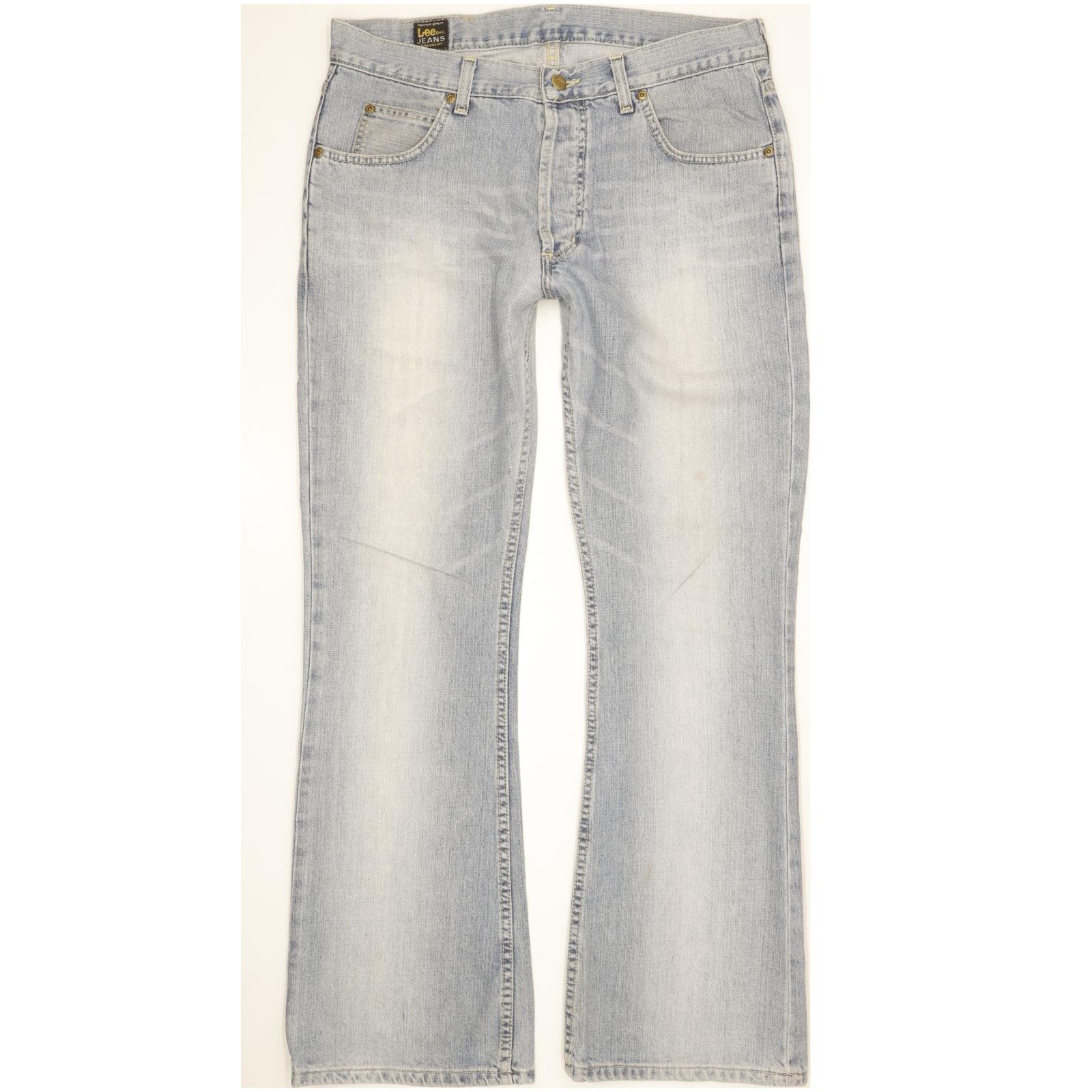 Lee Denver Bootcut Regular Jeans in Good used condition Please note small light marks to the left leg, please see photos. Jeans are made from 100% Cotton, they are in Blue colour and with a Button Fly. When considering a correct fit please refer to the Actual measured size as it is common for jeans to change size over time and differ from the label size. We have measured the jeans and the actual measurement are: Waist measure 34 inch, Inside leg measured 32 inch, we also measured Hems: 10 inch and Rise: 10.5 inch. If you need information or have any question, please Contact Us and we will do our best to help you.