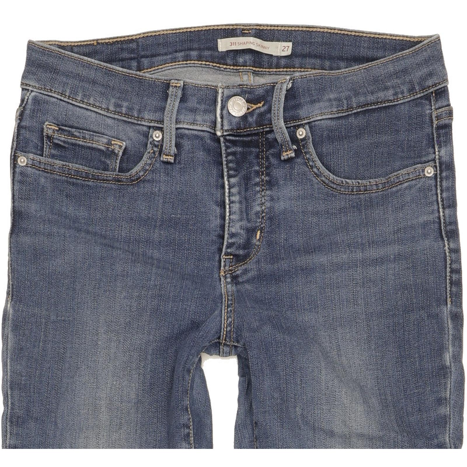 Levi's 311 Shaping Skinny Slim Jeans in Good used condition Please note light marks to the leg and some small wear to the edges, please see photos. Jeans are made from 98% Cotton, 2% Elastane, they are in Blue colour and with a Zipper Closure. When considering a correct fit please refer to the actual measurements provided, as jeans often differ from the labeled size due to wear and washing. We have measured the jeans and the actual measurements are: Waist measures 27 inches, Inside leg measures 30 inches, we also measured Hems: 5 inches and Rise: 9 inches. If you have any questions or need additional information, feel free to contact us—we’re happy to help!