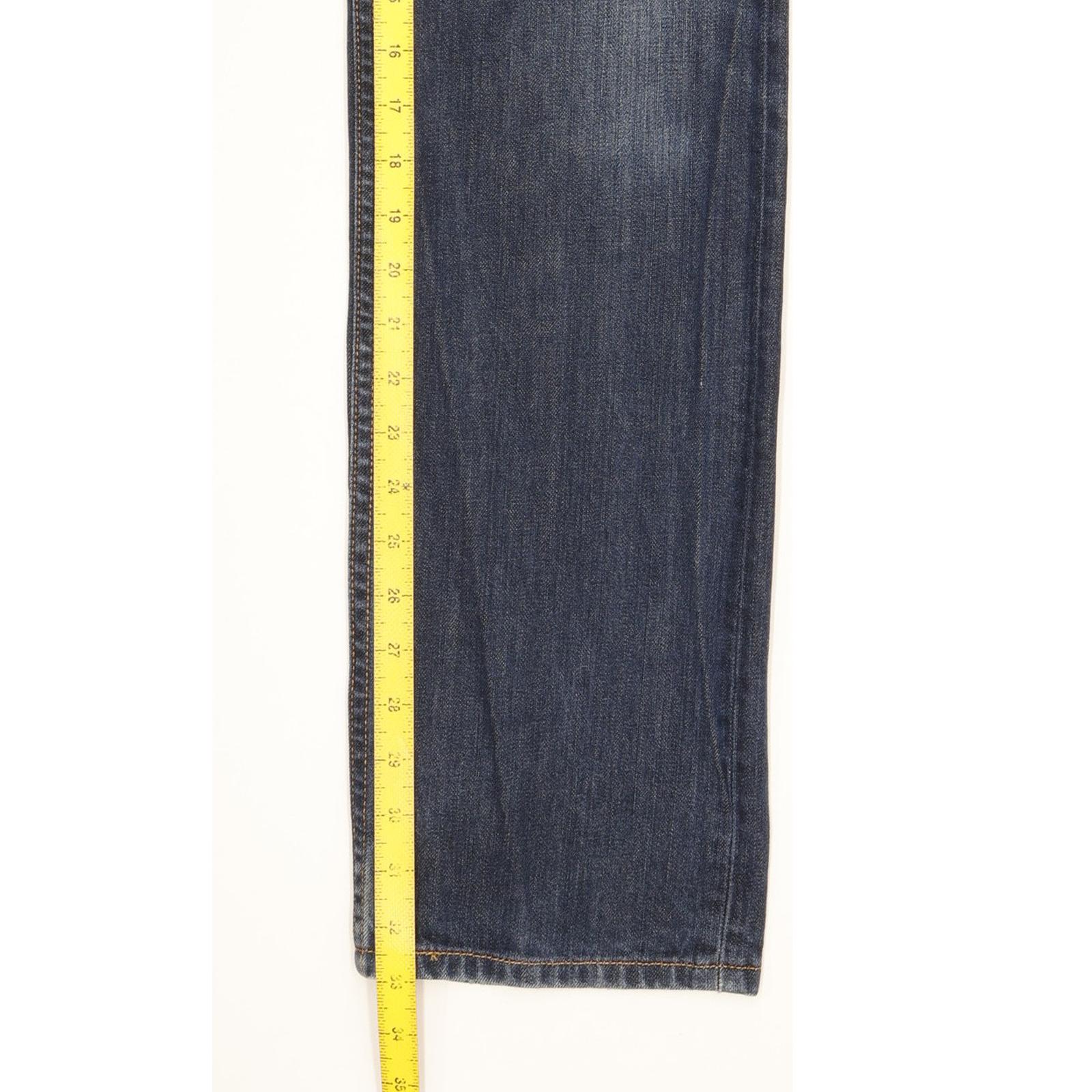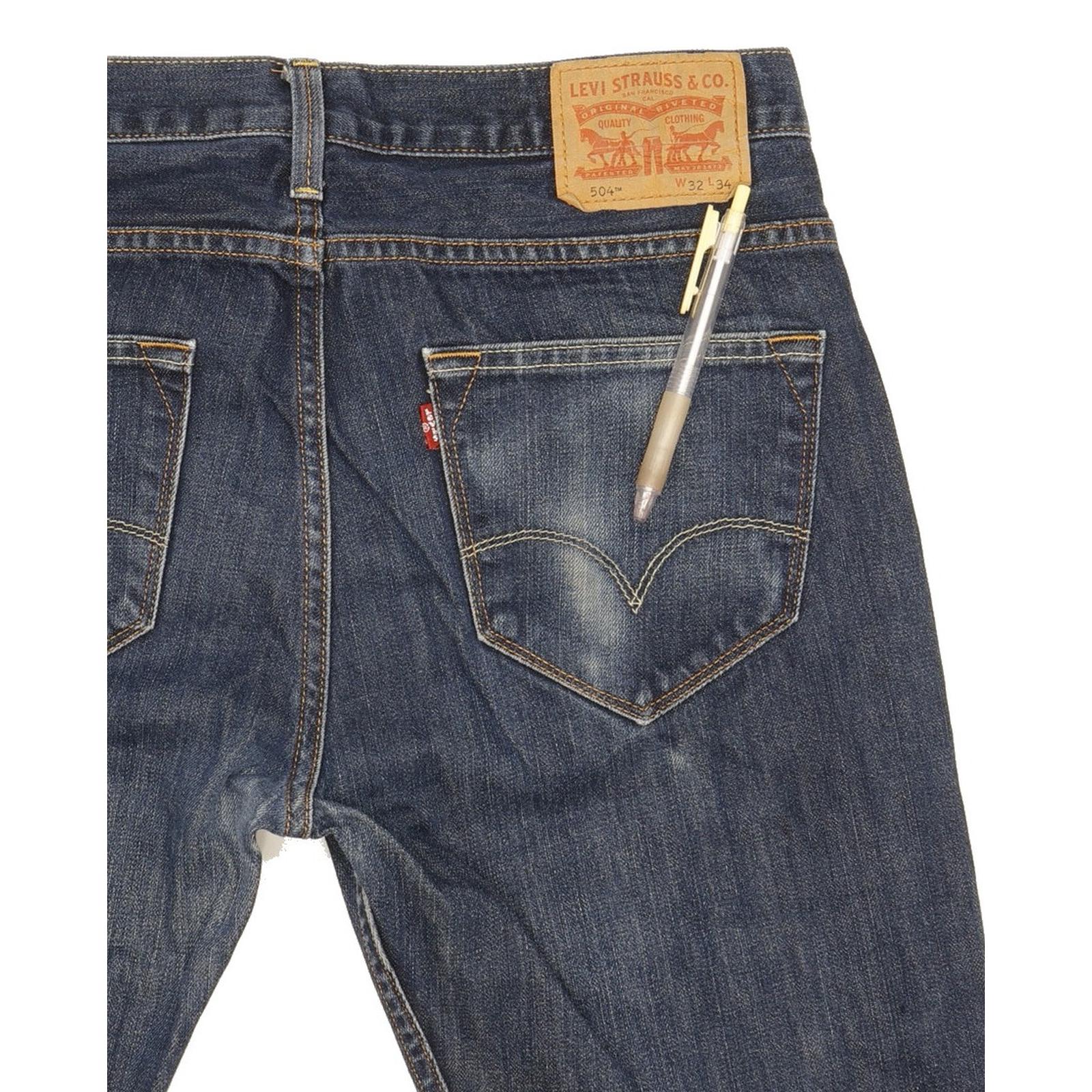 Levi's 504 Straight Regular Jeans in Good used condition Please note light faded areas to the pockets and the actual inside leg measurement is 33", please see photos. Jeans are made from 100% Cotton, they are in Blue colour and with a Zipper Closure. When considering a correct fit please refer to the Actual measured size as it is common for jeans to change size over time and differ from the label size. We have measured the jeans and the actual measurement are: Waist measure 32 inch, Inside leg measured 33 inch, we also measured Hems: 7.5 inch and Rise: 10.5 inch. If you need information or have any question, please Contact Us and we will do our best to help you.
