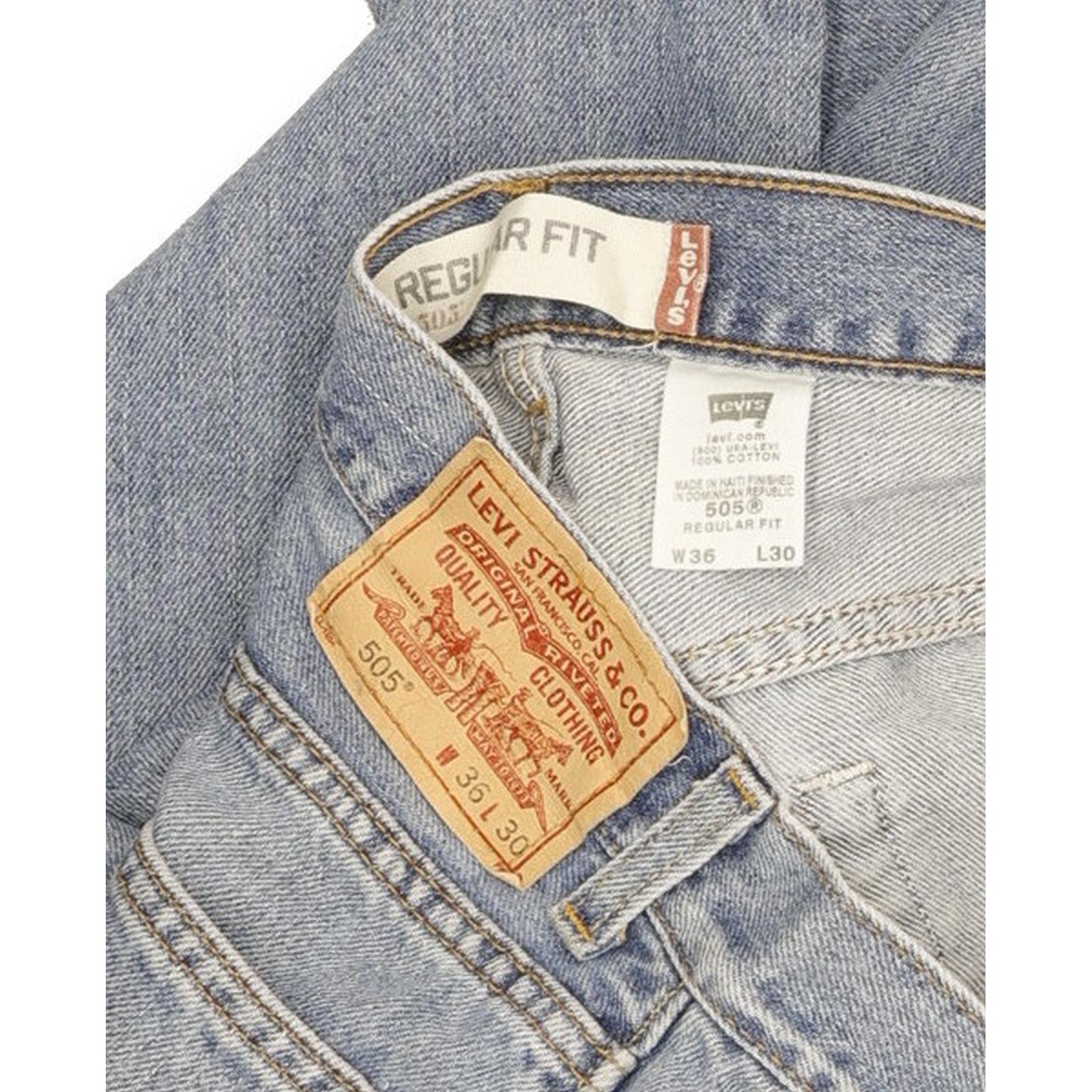 Levi's 505 Straight Regular Jeans in Good used condition Please note small marks above the hems and the actual inside leg measurement is 29", please see photos. Jeans are made from 100% Cotton, they are in Blue colour and with a Zipper Closure. When considering a correct fit please refer to the actual measurements provided, as jeans often differ from the labeled size due to wear and washing. We have measured the jeans and the actual measurements are: Waist measures 36 inches, Inside leg measures 29 inches, we also measured Hems: 8.5 inches and Rise: 11.5 inches. If you have any questions or need additional information, feel free to contact us—we’re happy to help!