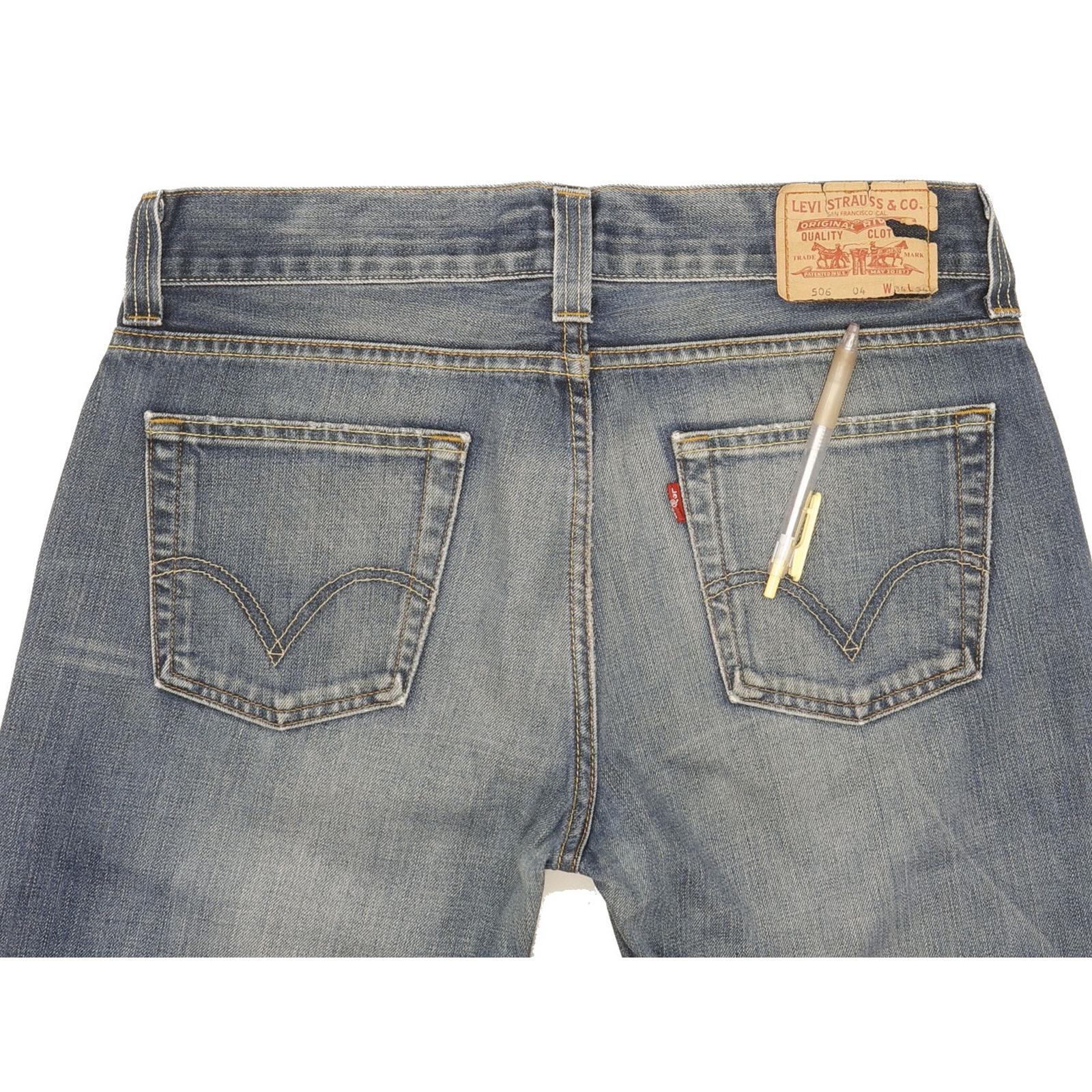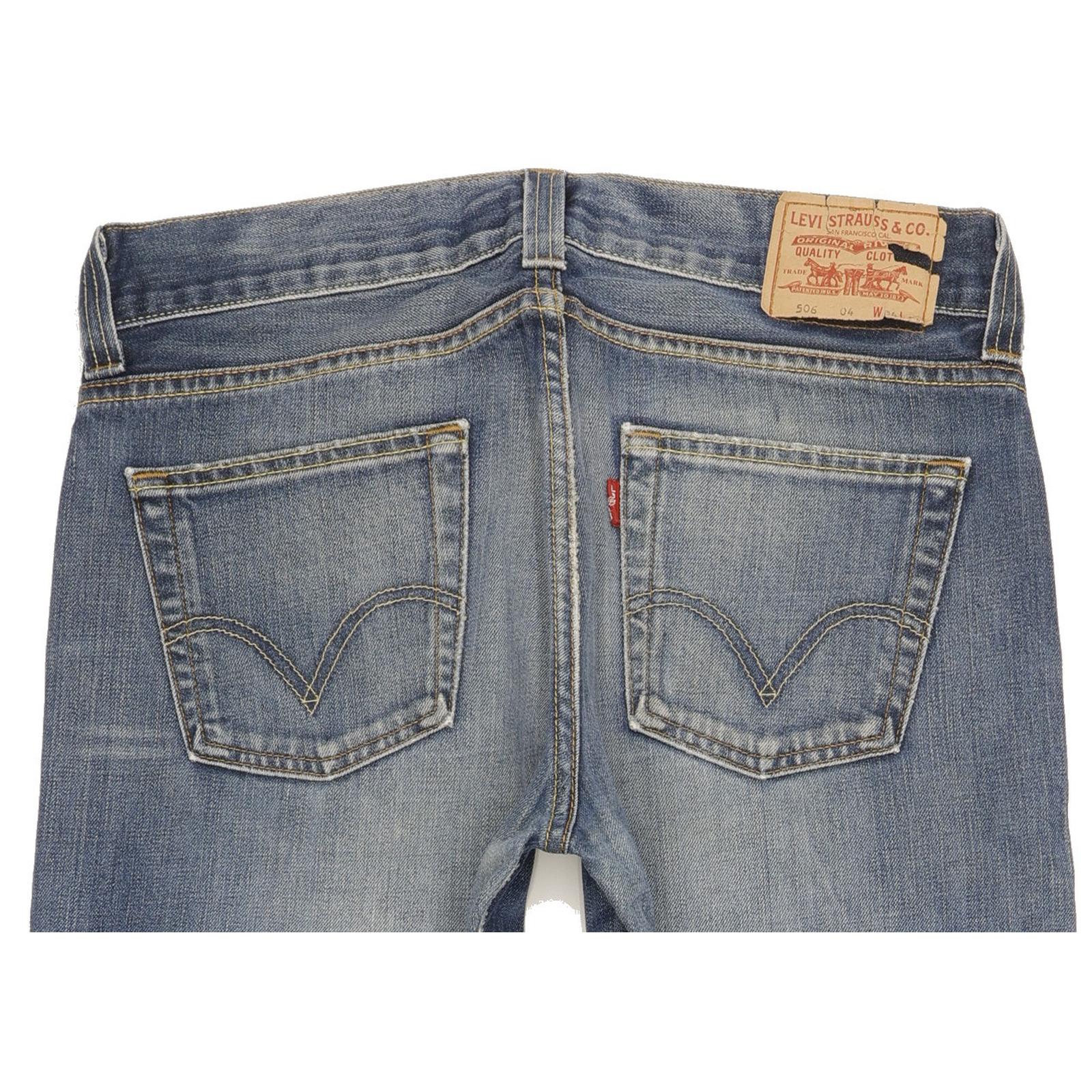 Levi's 506 Straight Regular Jeans in Good used condition Please note the badge is getting broken, please see photos. Jeans are made from 100% Cotton, they are in Blue colour and with a Zipper Closure. When considering a correct fit please refer to the actual measurements provided, as jeans often differ from the labeled size due to wear and washing. We have measured the jeans and the actual measurements are: Waist measures 34 inches, Inside leg measures 34 inches, we also measured Hems: 9 inches and Rise: 11 inches. If you have any questions or need additional information, feel free to contact us—we’re happy to help!