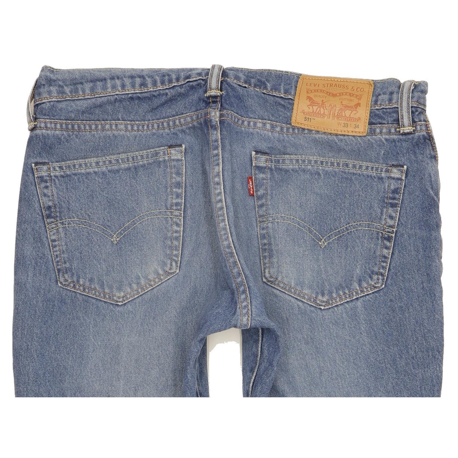 Levi's 511 Straight Slim Jeans in Good used condition Please note the actual inside leg measurement is 33", please see photos. Jeans are made from 99% Cotton, 1% Elastane, they are in Blue colour and with a Zipper Closure. When considering a correct fit please refer to the Actual measured size as it is common for jeans to change size over time and differ from the label size. We have measured the jeans and the actual measurement are: Waist measure 33 inch, Inside leg measured 33 inch, we also measured Hems: 7.5 inch and Rise: 10 inch. If you need information or have any question, please Contact Us and we will do our best to help you.