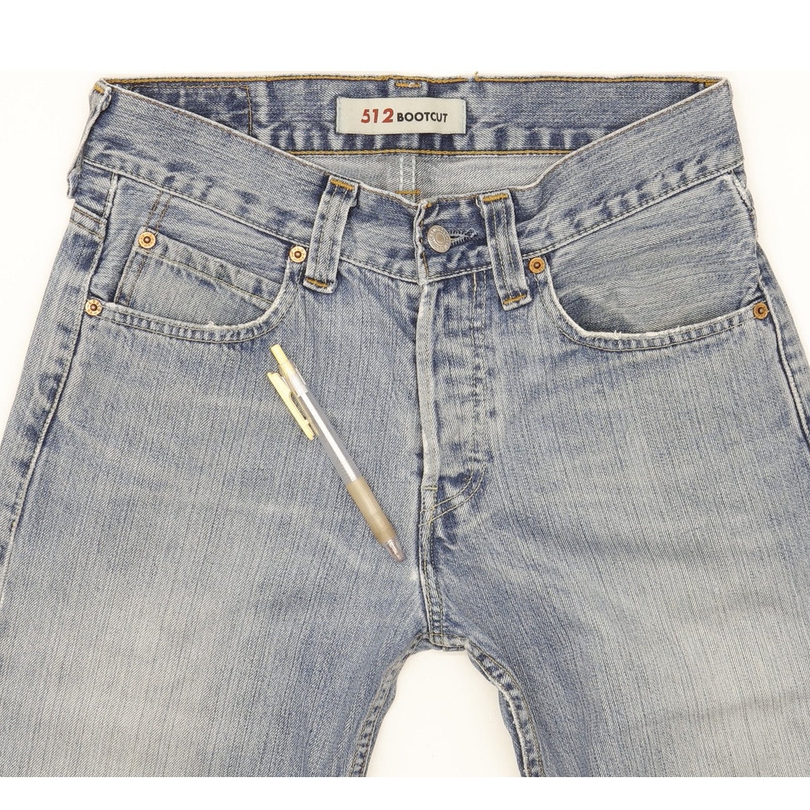 Levi's 512 Bootcut Slim Jeans in Good used condition Please note snag by the fly, please see photos. Jeans are made from 100% Cotton, they are in Blue colour and with a Button Fly. When considering a correct fit please refer to the actual measurements provided, as jeans often differ from the labeled size due to wear and washing. We have measured the jeans and the actual measurements are: Waist measures 30 inches, Inside leg measures 32 inches, we also measured Hems: 9 inches and Rise: 10 inches. If you have any questions or need additional information, feel free to contact us—we’re happy to help!
