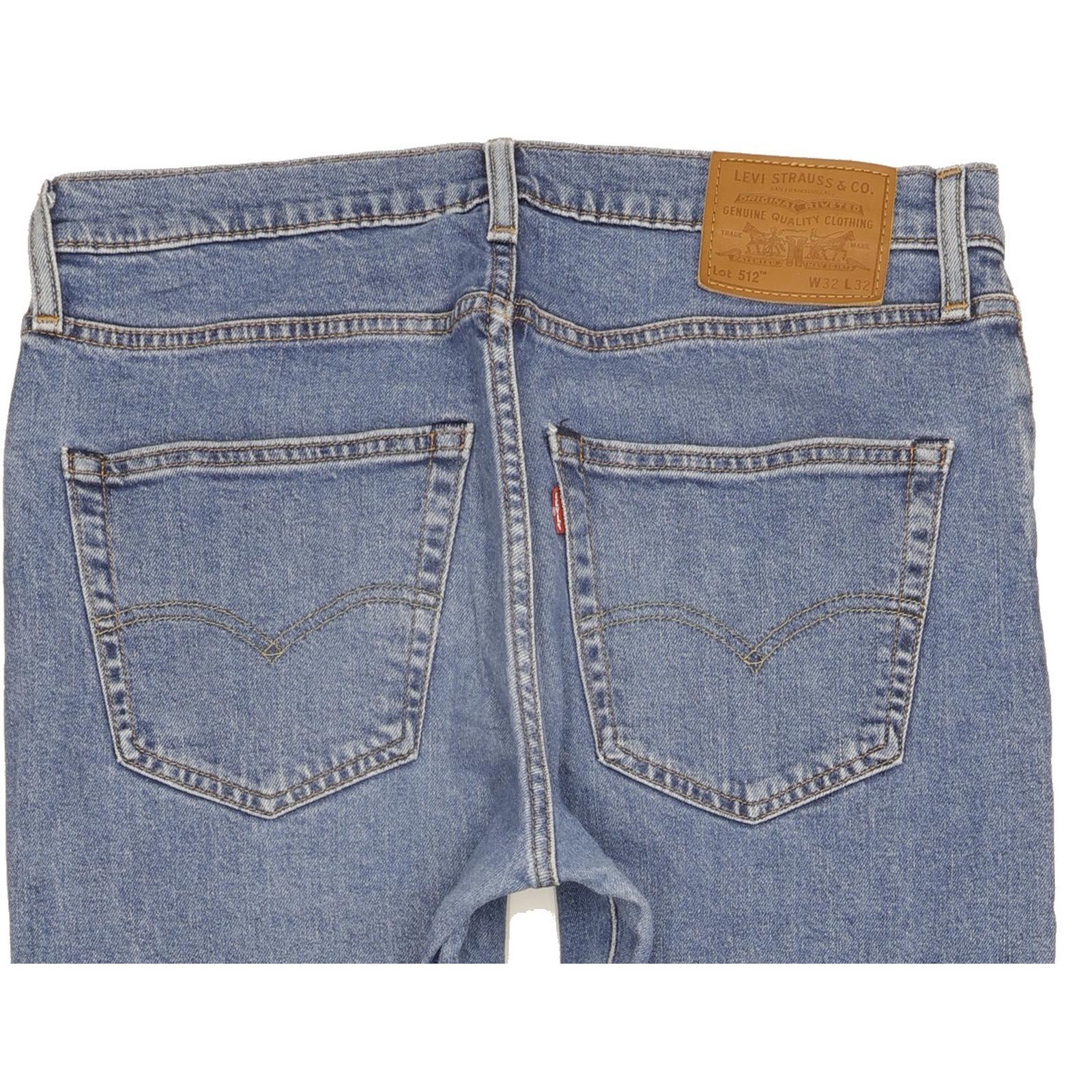 Levi's 512 Tapered Slim Jeans in Good used condition Please note the actual inside leg measurement is 31", please see photos. Jeans are made from 70% Cotton, 30% Lyocell, they are in Blue colour and with a Zipper Closure. When considering a correct fit please refer to the Actual measured size as it is common for jeans to change size over time and differ from the label size. We have measured the jeans and the actual measurement are: Waist measure 32 inch, Inside leg measured 31 inch, we also measured Hems: 6.5 inch and Rise: 10.5 inch. If you need information or have any question, please Contact Us and we will do our best to help you.
