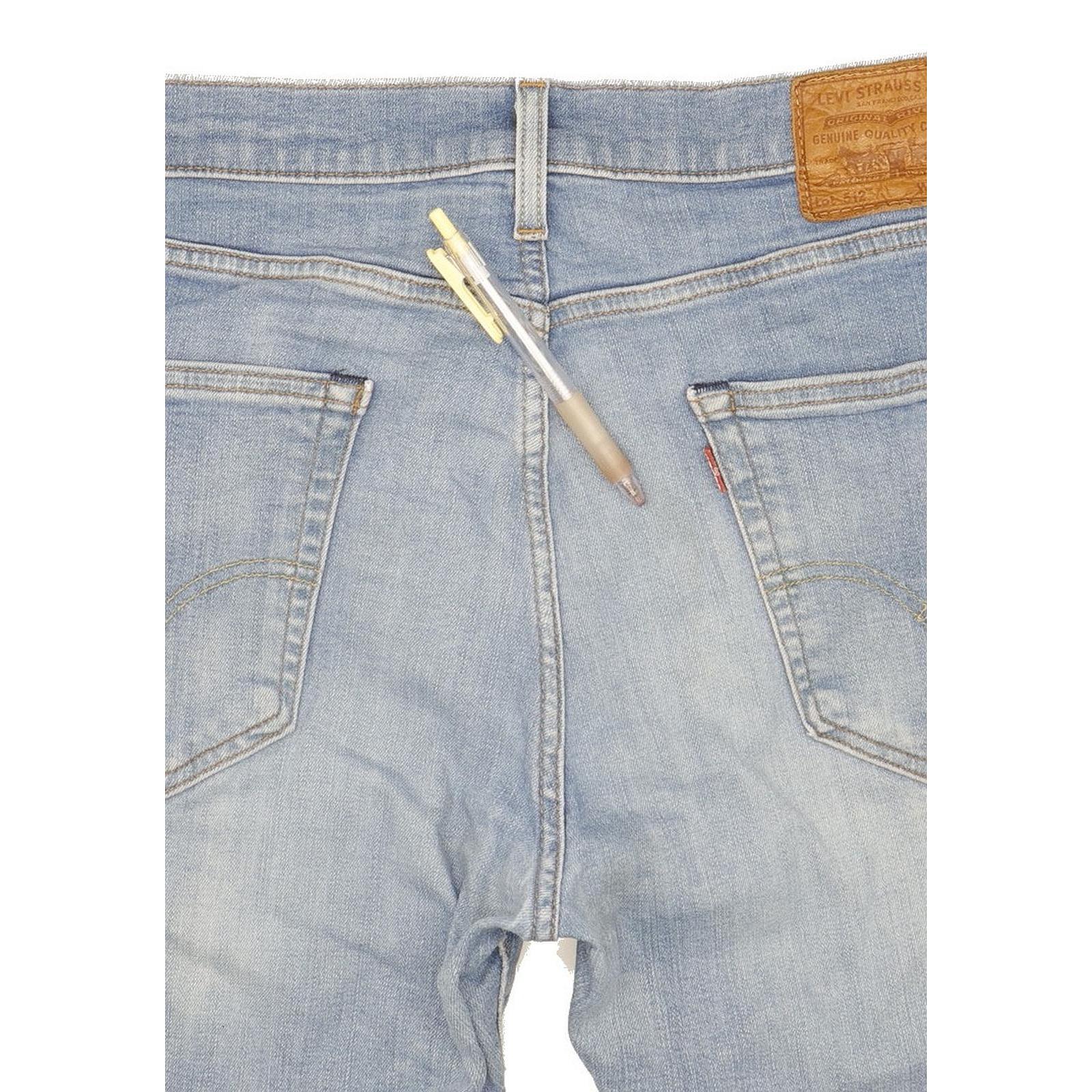 Levi's 512 Tapered Slim Jeans in Good used condition Please note light mark to the bum and the actual inside leg measurement is 33", please see photos. Jeans are made from 99% Cotton, 1% Elastane, they are in Blue colour and with a Zipper Closure. When considering a correct fit please refer to the actual measurements provided, as jeans often differ from the labeled size due to wear and washing. We have measured the jeans and the actual measurements are: Waist measures 34 inches, Inside leg measures 33 inches, we also measured Hems: 6.5 inches and Rise: 11 inches. If you have any questions or need additional information, feel free to contact us—we’re happy to help!