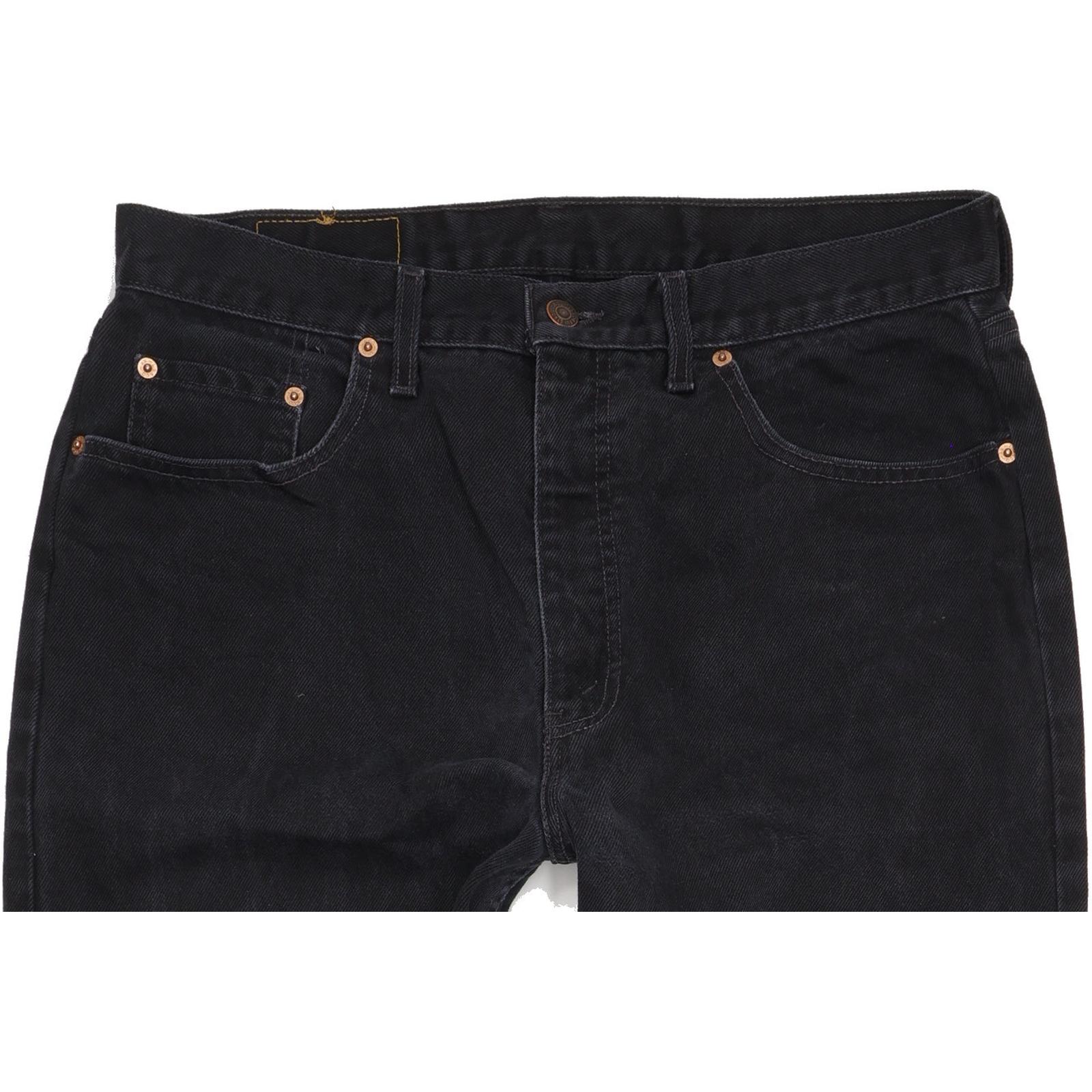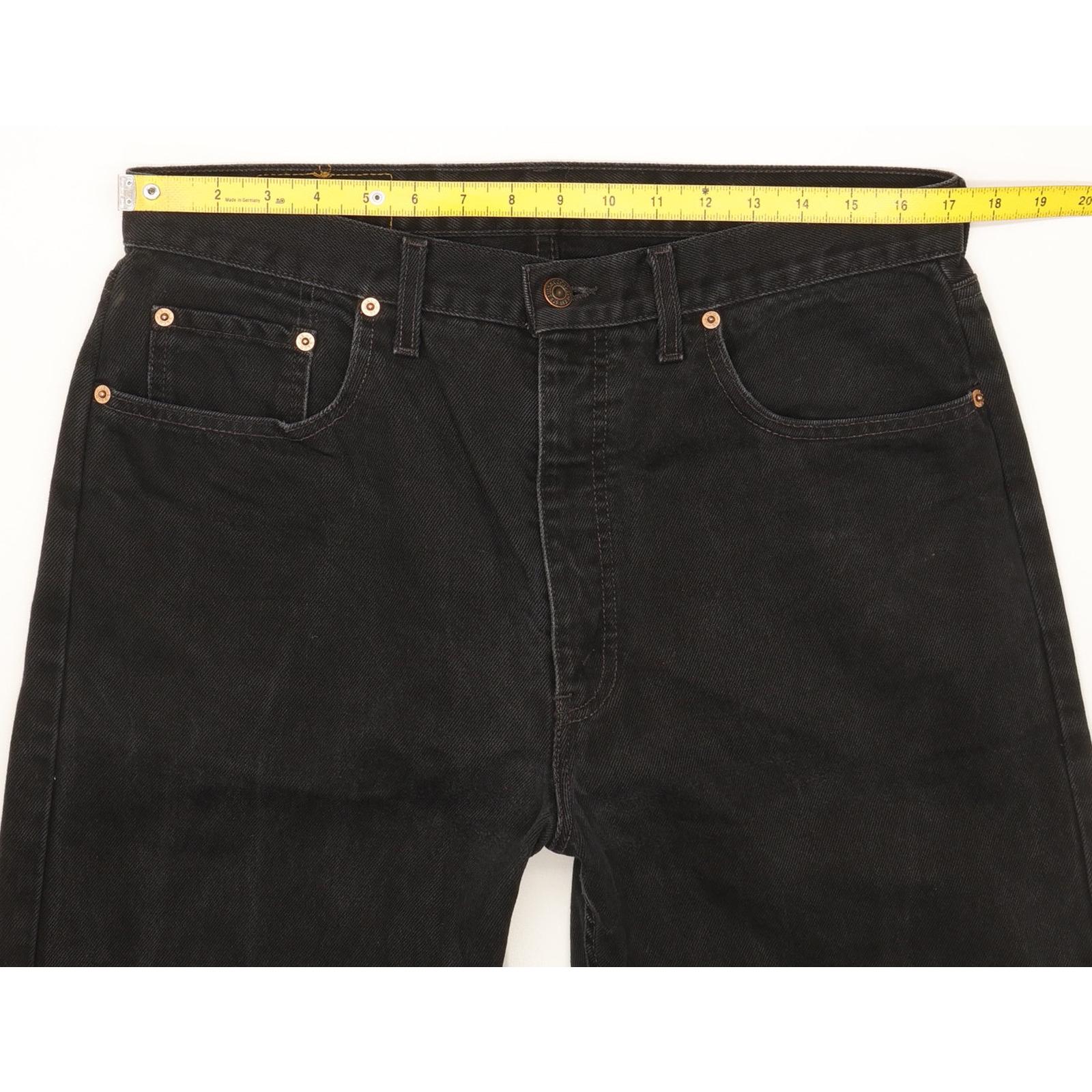 Levi's 615 Straight Regular Jeans in Good used condition Please note some wear to the crotch ans the actual waist measurement is 35", please see photos. Jeans are made from 100% Cotton, they are in Black colour and with a Zipper Closure. When considering a correct fit please refer to the Actual measured size as it is common for jeans to change size over time and differ from the label size. We have measured the jeans and the actual measurement are: Waist measure 35 inch, Inside leg measured 34 inch, we also measured Hems: 7.5 inch and Rise: 12.5 inch. If you need information or have any question, please Contact Us and we will do our best to help you.