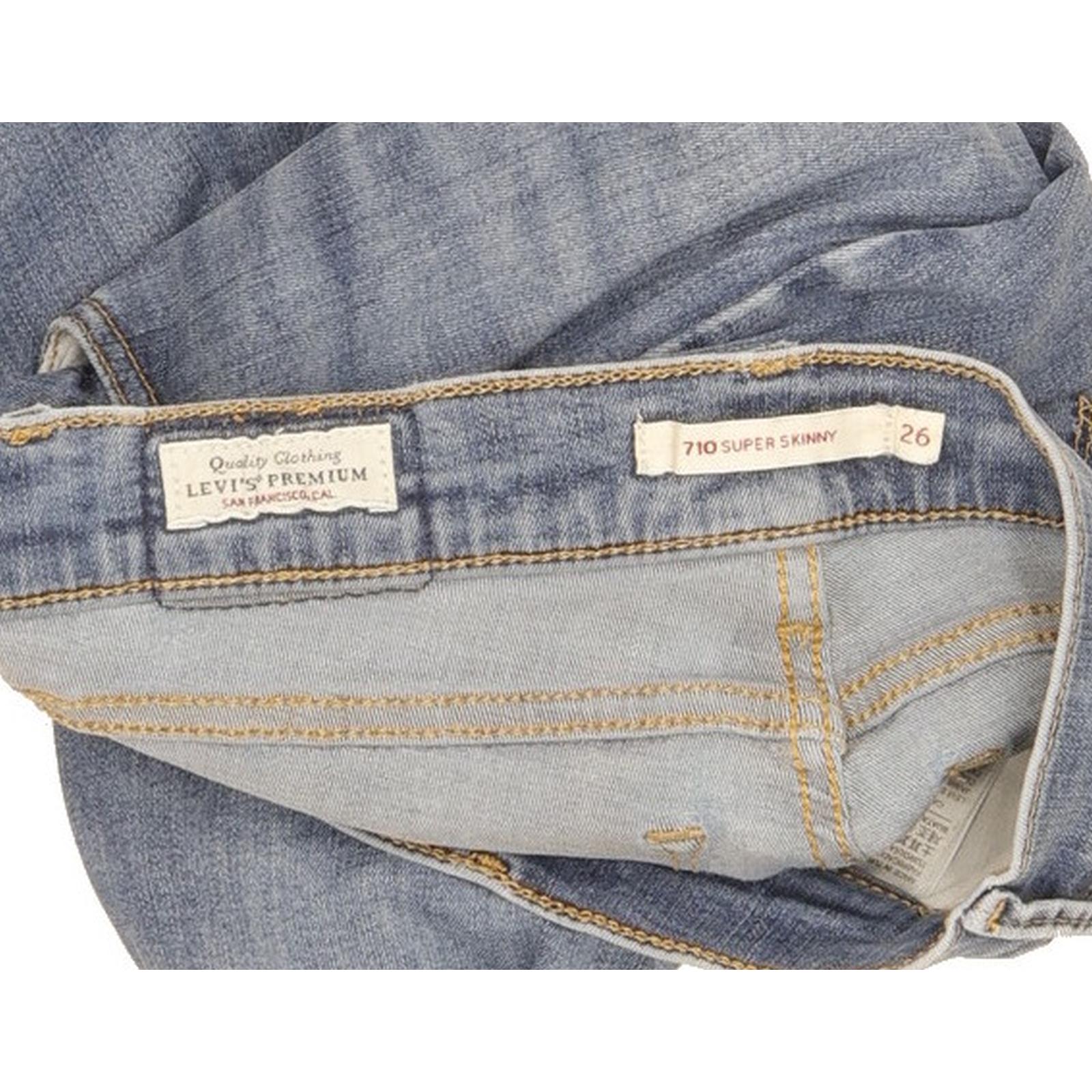 Levi's 710 Super Skinny Slim Jeans in Good used condition Please note hole by the back pocket and the actual inside leg measurement is 31", please see photos. Jeans are made from 85% Cotton, 9% Polyester, 6% Elastane, they are in Blue colour and with a Zipper Closure. When considering a correct fit please refer to the actual measurements provided, as jeans often differ from the labeled size due to wear and washing. We have measured the jeans and the actual measurements are: Waist measures 26 inches, Inside leg measures 31 inches, we also measured Hems: 4.5 inches and Rise: 7.5 inches. If you have any questions or need additional information, feel free to contact us—we’re happy to help!