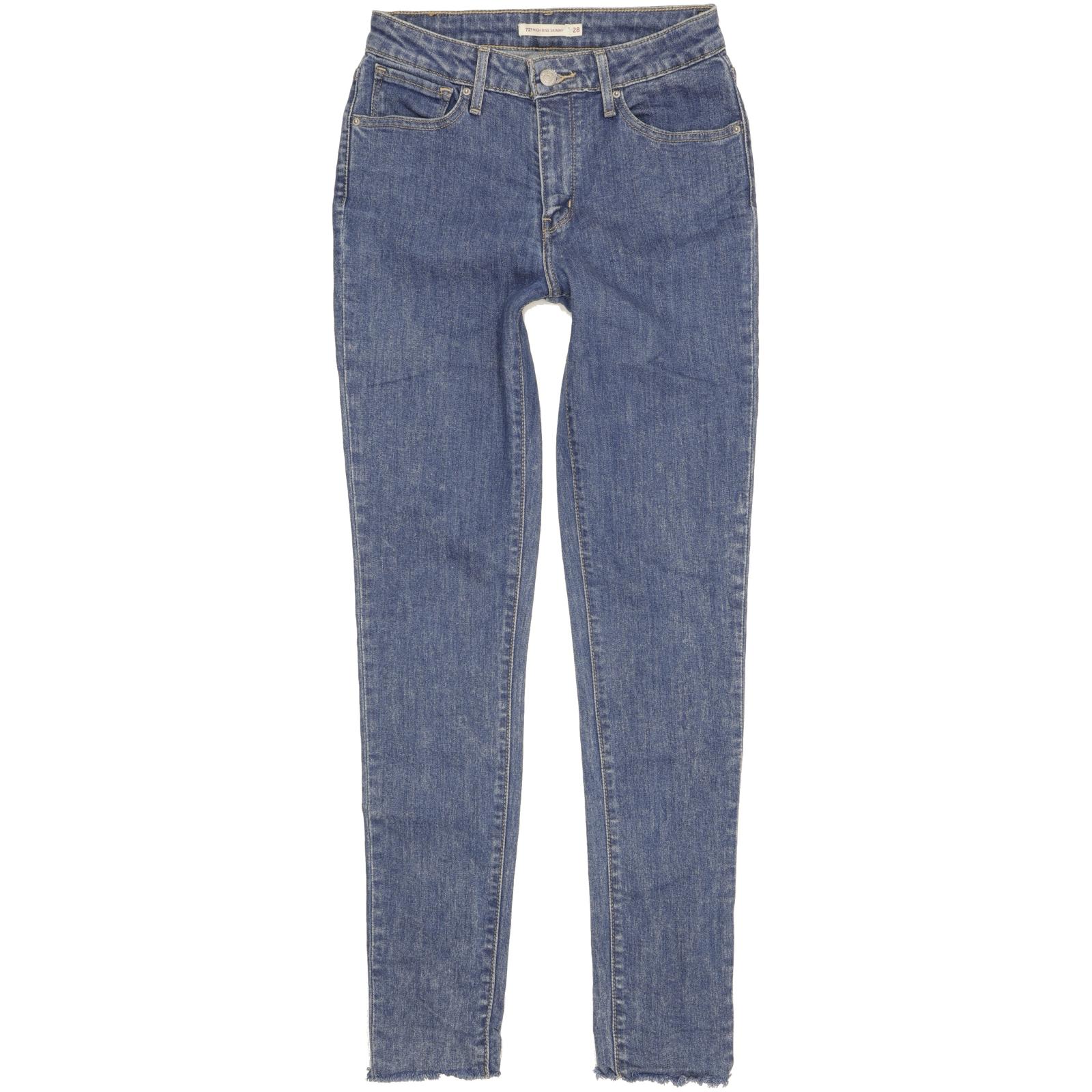 Levi's 721 Skinny Slim Jeans in Good used condition Please note the actual inside leg measurement is 32" but due to the ankle style the leg meant to fit 34", please see photos. Jeans are made from 93% Cotton, 6% Polyester, 1% Elastane, they are in Blue colour and with a Zipper Closure. When considering a correct fit please refer to the actual measurements provided, as jeans often differ from the labeled size due to wear and washing. We have measured the jeans and the actual measurements are: Waist measures 28 inches, Inside leg measures 34 inches, we also measured Hems: 5.5 inches and Rise: 10 inches. If you have any questions or need additional information, feel free to contact us—we’re happy to help!