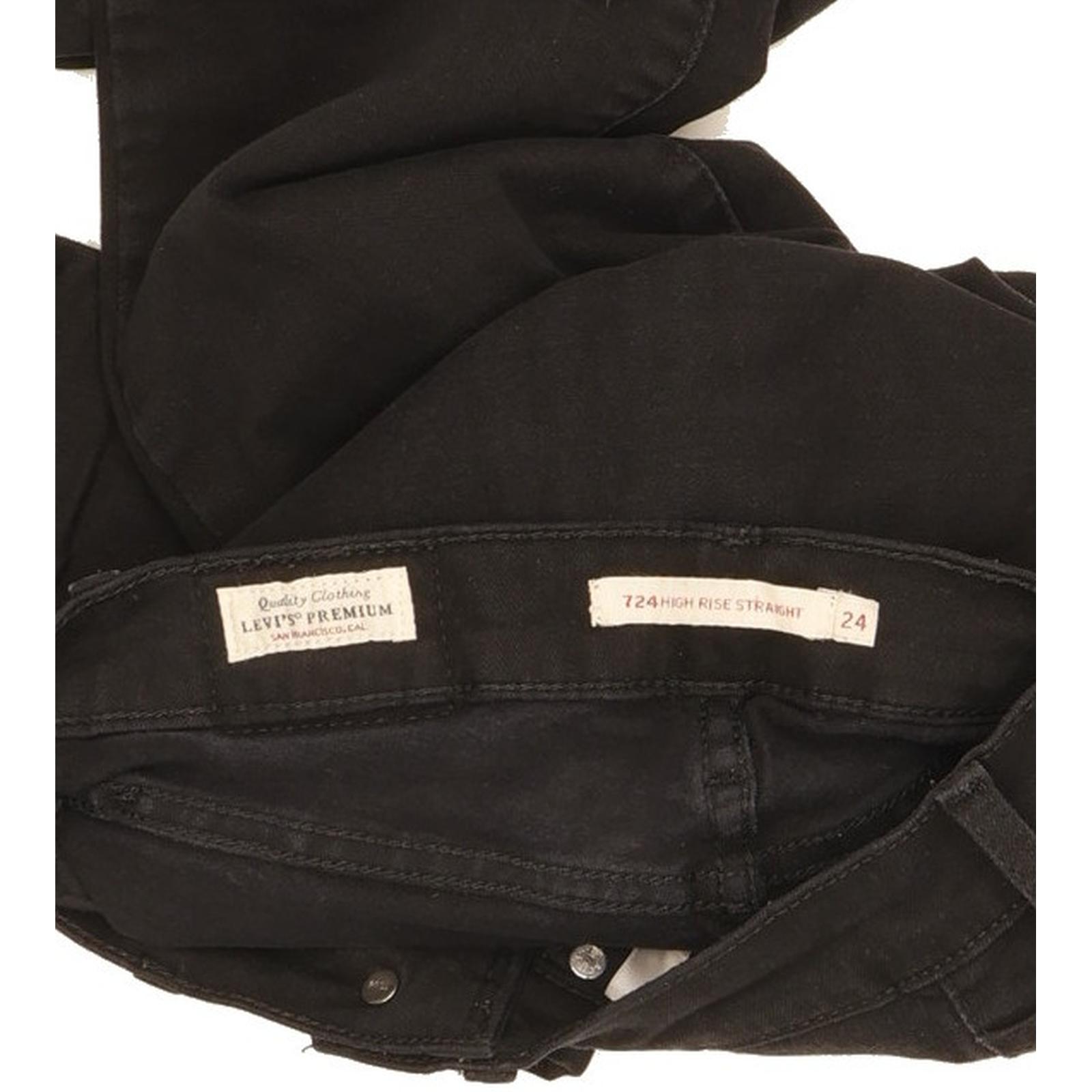 Levi's 724 Skinny Slim Jeans in Very good used condition Please note the actual inside leg measurement is 29", please see photos. Jeans are made from 62% Cotton, 28% Viscose, 8% Elastomultiester, 2% Elastane, they are in Black colour and with a Zipper Closure. When considering a correct fit please refer to the actual measurements provided, as jeans often differ from the labeled size due to wear and washing. We have measured the jeans and the actual measurements are: Waist measures 24 inches, Inside leg measures 29 inches, we also measured Hems: 6 inches and Rise: 9.5 inches. If you have any questions or need additional information, feel free to contact us—we’re happy to help!