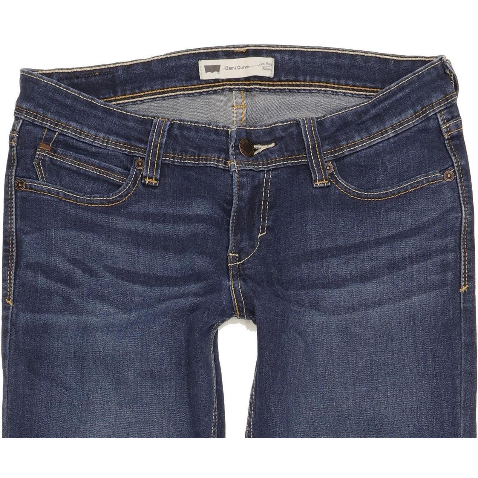 Levi's Demi Curve Skinny Slim Jeans in Good used condition Please note the actual inside leg measurement is 33", please see photos. Jeans are made from 68% Cotton, 24% Polyester, 7% Viscose, 1% Elastane, they are in Blue colour and with a Zipper Closure. When considering a correct fit please refer to the actual measurements provided, as jeans often differ from the labeled size due to wear and washing. We have measured the jeans and the actual measurements are: Waist measures 29 inches, Inside leg measures 33 inches, we also measured Hems: 6 inches and Rise: 7.5 inches. If you have any questions or need additional information, feel free to contact us—we’re happy to help!