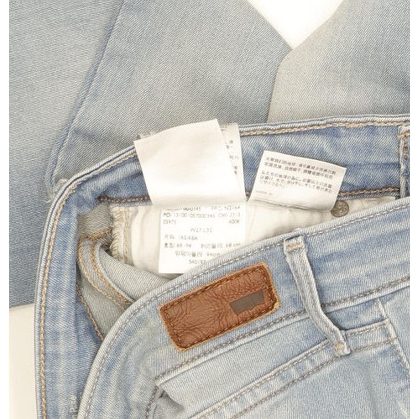 Levi's Demi Curve Straight Slim Jeans in Good used condition please note the legs have been shortened to 30" and with small imperfection to the leg, please see photos. Jeans are made from 98% Cotton, 2% Elastane, they are in Blue colour and with a Zipper Closure. When considering a correct fit please refer to the actual measurements provided, as jeans often differ from the labeled size due to wear and washing. We have measured the jeans and the actual measurements are: Waist measures 27 inches, Inside leg measures 30 inches, we also measured Hems: 7 inches and Rise: 8 inches. If you have any questions or need additional information, feel free to contact us—we’re happy to help!