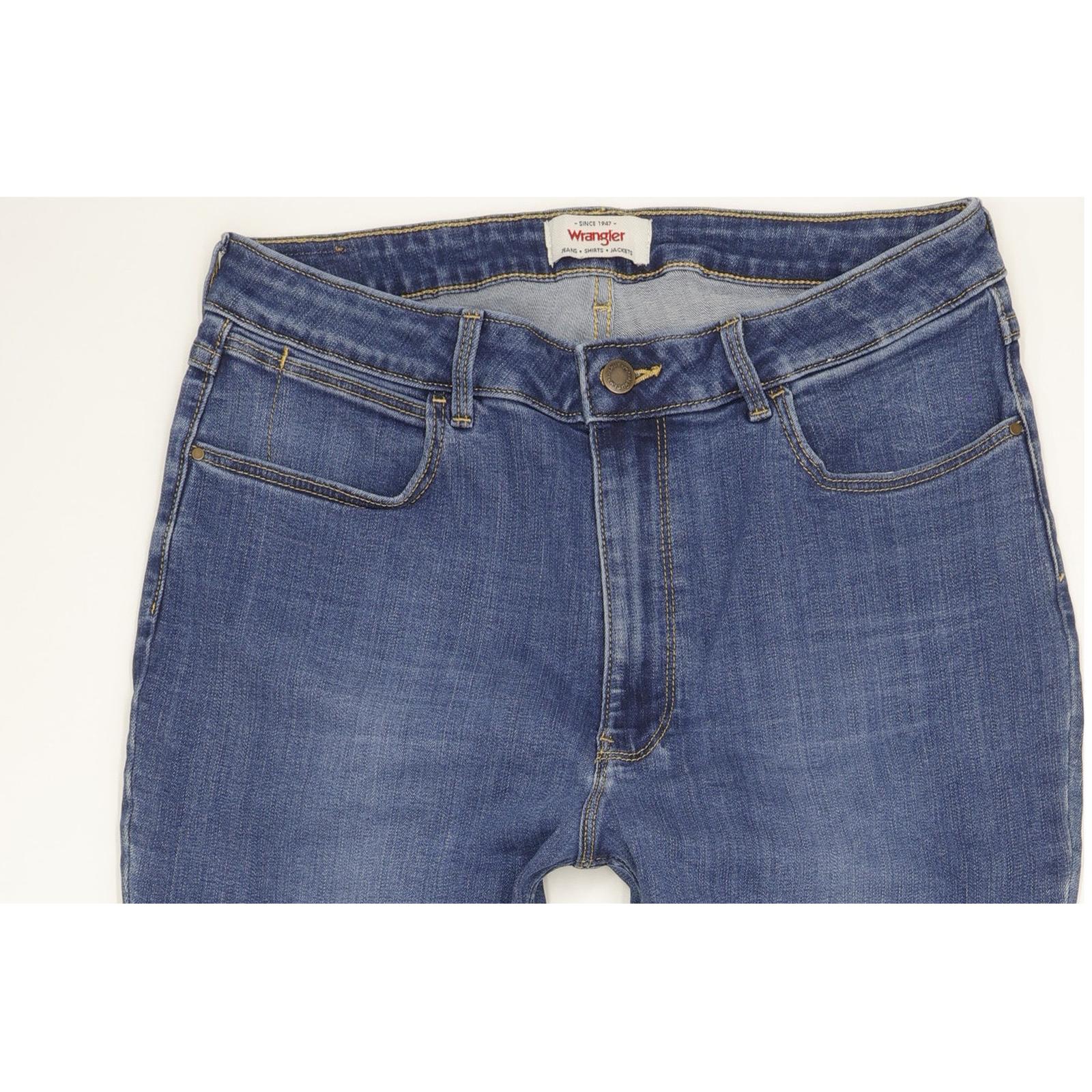 Wrangler Straight Regular Jeans in Very good used condition , please see photos. Jeans are made from 100% Cotton, they are in Blue colour and with a Zipper Closure. When considering a correct fit please refer to the actual measurements provided, as jeans often differ from the labeled size due to wear and washing. We have measured the jeans and the actual measurements are: Waist measures 30 inches, Inside leg measures 31 inches, we also measured Hems: 8 inches and Rise: 11 inches. If you have any questions or need additional information, feel free to contact us—we’re happy to help!