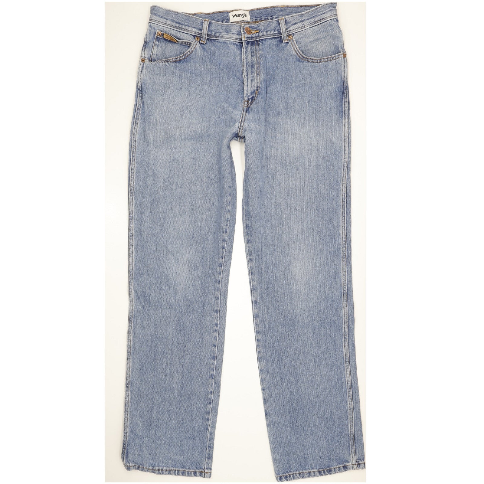 Wrangler Texas Straight Regular Jeans in Good used condition Please note the actual inside leg measurement is 33", please see photos. Jeans are made from 100% Cotton, they are in Blue colour and with a Zipper Closure. When considering a correct fit please refer to the actual measurements provided, as jeans often differ from the labeled size due to wear and washing. We have measured the jeans and the actual measurements are: Waist measures 36 inches, Inside leg measures 33 inches, we also measured Hems: 8.5 inches and Rise: 11.5 inches. If you have any questions or need additional information, feel free to contact us—we’re happy to help!