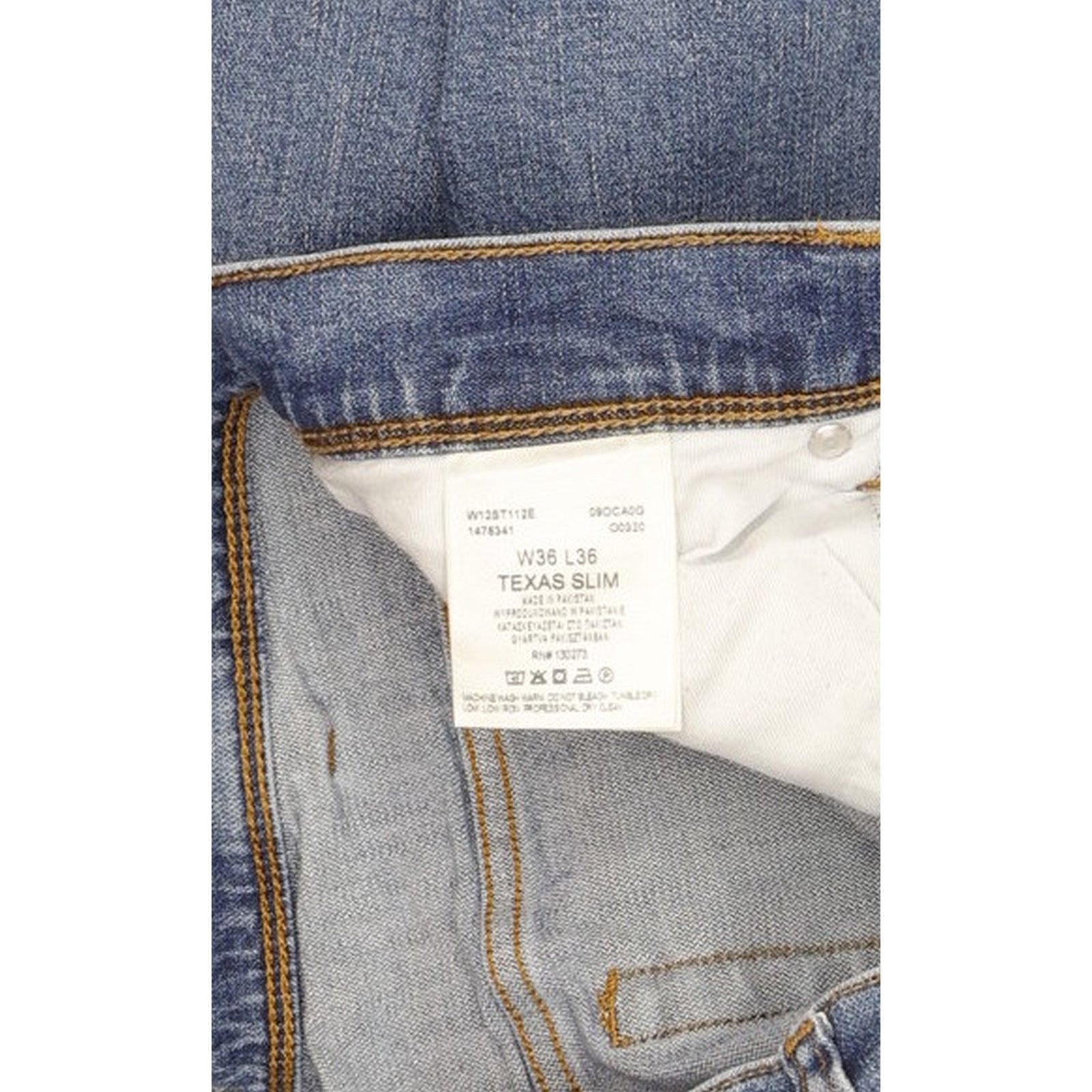 Wrangler Texas Straight Slim Jeans in Good used condition Please note the actual inside leg measurement is 35", please see photos. Jeans are made from 99% Cotton, 1% Elastane, they are in Blue colour and with a Zipper Closure. When considering a correct fit please refer to the actual measurements provided, as jeans often differ from the labeled size due to wear and washing. We have measured the jeans and the actual measurements are: Waist measures 36 inches, Inside leg measures 35 inches, we also measured Hems: 7.5 inches and Rise: 11.5 inches. If you have any questions or need additional information, feel free to contact us—we’re happy to help!